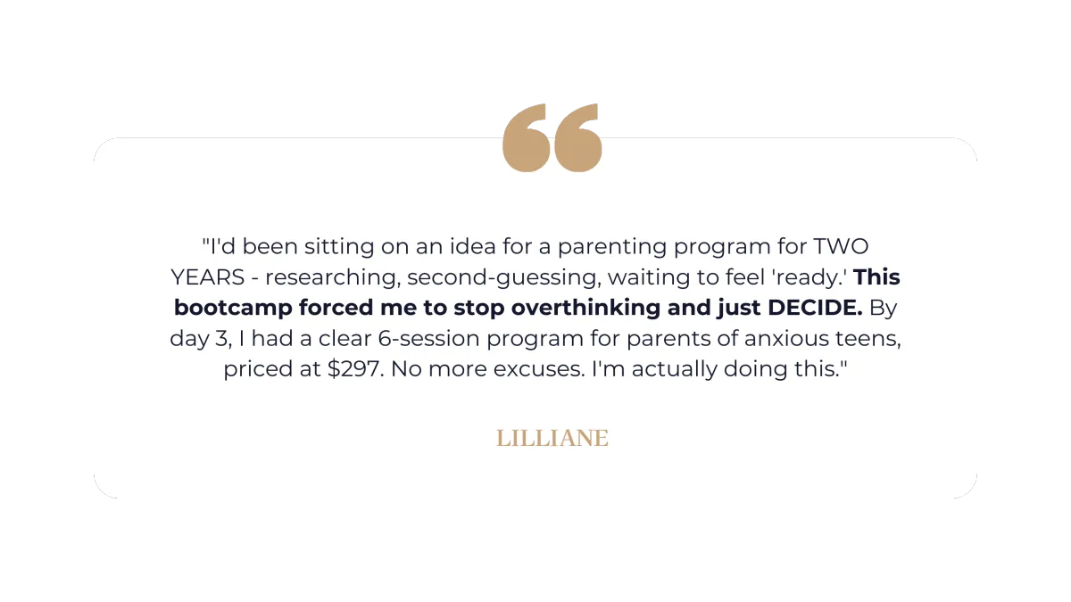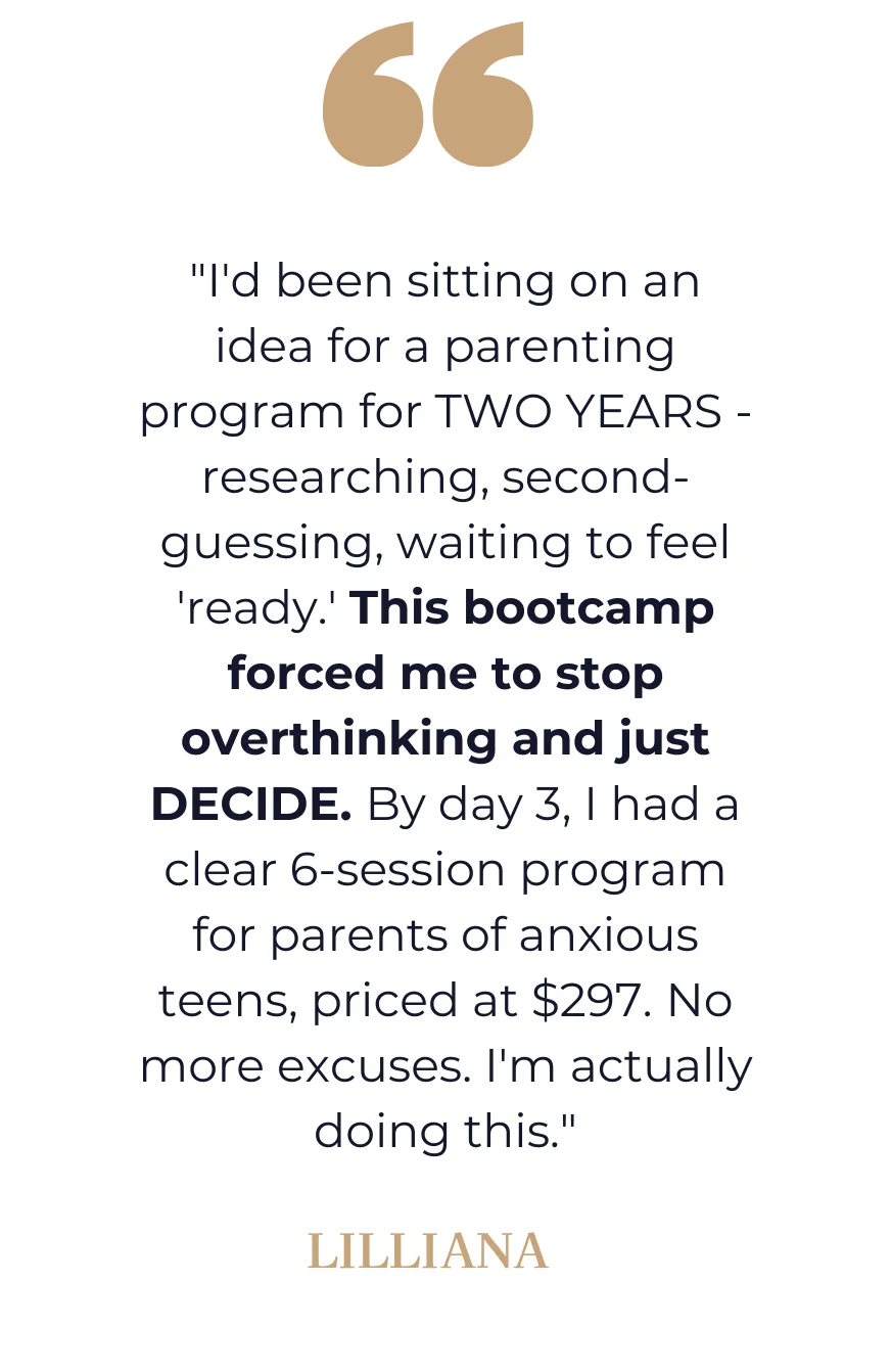 This bootcamp gives you exactly what you need to make marketing easier: a clear topic, a structured framework, and pricing you believe in. Once you have that foundation, marketing becomes infinitely simpler. (And if you want support with marketing and launching after, that's what the Incubator provides.)