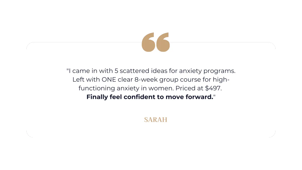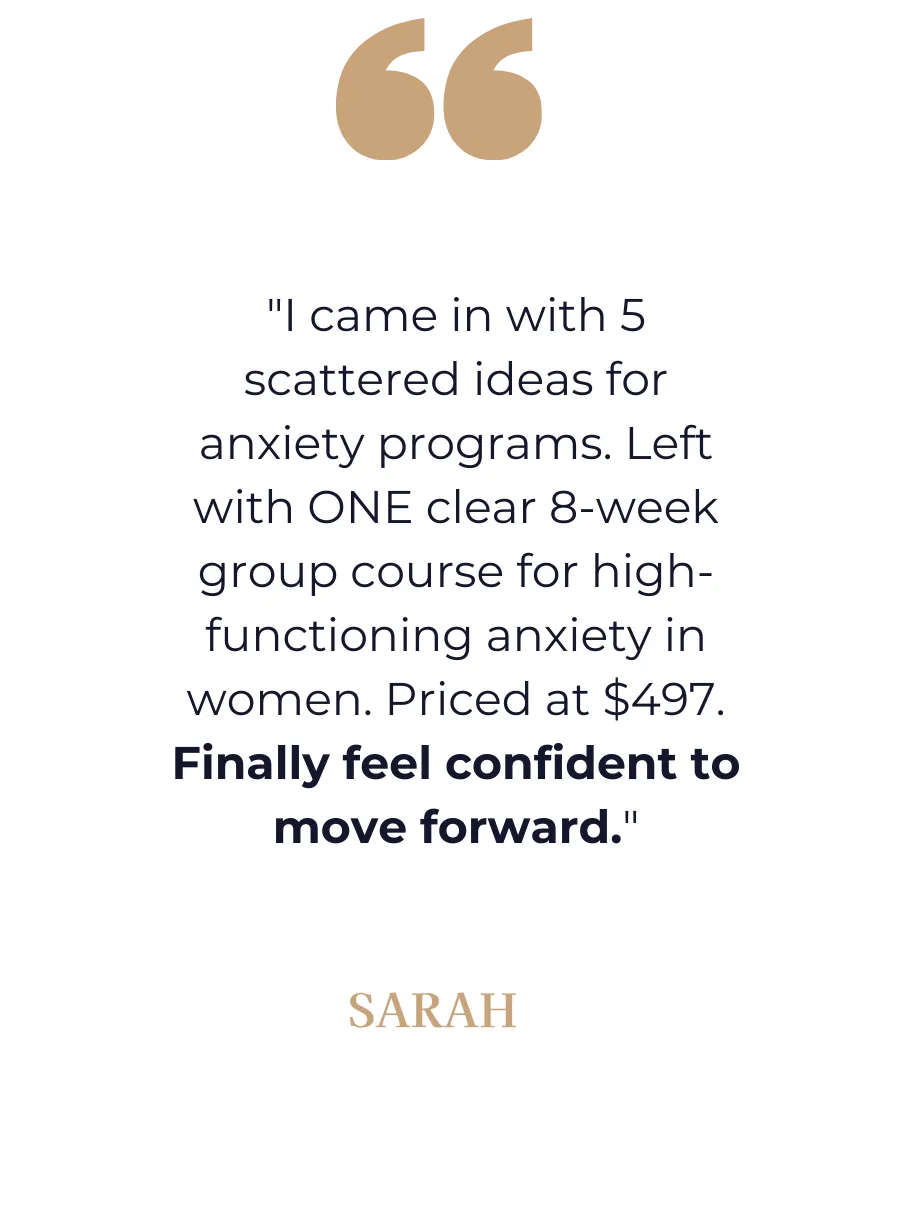 I figured out what actually works - not through theory, but through creating 7 courses, making every mistake possible, and helping over 10,000 therapists build programs that actually work.